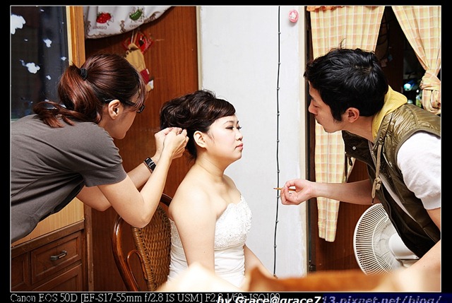 因為要在早上9 點半就要入房, 所以早上4 點半就要起床化妝