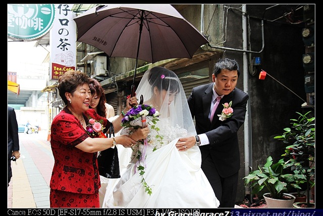 到了男方家(很多朋友問我, 你用雨傘是不是...., 我說..不是, 台北人都用雨傘的)