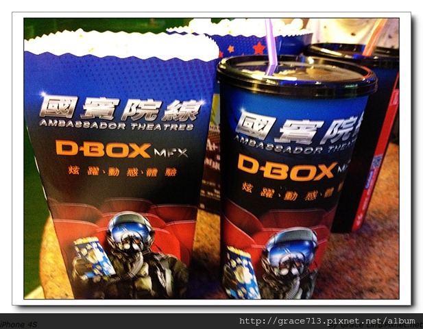 所有的D-BOX 的票都含有小爆米花及 一大杯飲料, 杯子跟一般買的紙杯不同,