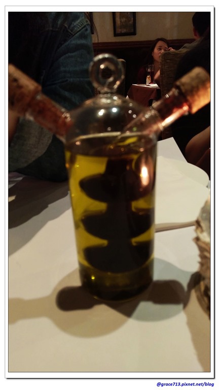 很可愛的加橄欖油瓶 (店內客人超多店內又小, 很難避掉其他桌的客人)