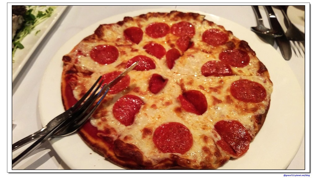 香腸Pizza, 是我很愛的薄餅, 起司超多, 很好吃, 不過, 好飽啊