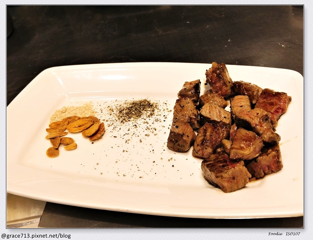 這裡的牛排不是用洋蔥及一堆香辛料炒一炒, 然後淋上黑胡椒醬, 而是煎成半熟, 另外提供蒜片, 胡椒, 鹽佐餐, 完全不輸高級鐵板燒的作法, 當然肉質無法跟高級店去比, 但軟嫩度適中, 不會硬到咬不動, 也算不錯了