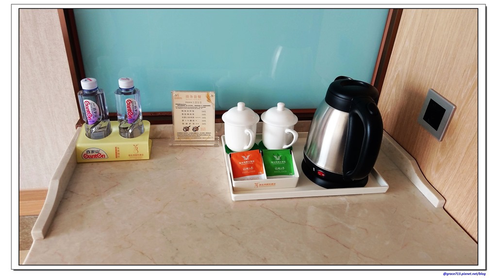 有熱水瓶, 也有送水, 但房間沒有冰箱