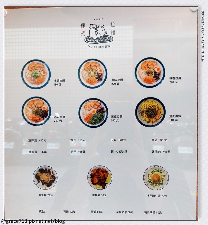 菜單也很簡單, 因為我只有一人, 再加上第一次來, 就點跟招牌同名的裸湯拉麵 NT190,