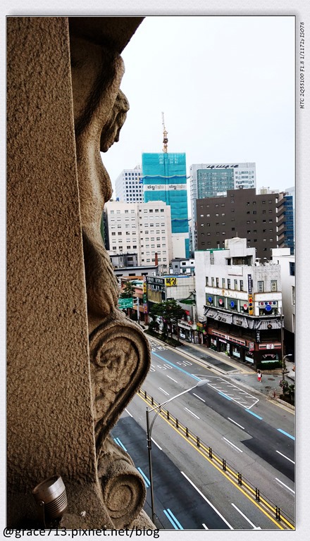 窗邊可以看到外面的雕刻, 挺有趣的