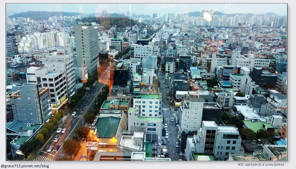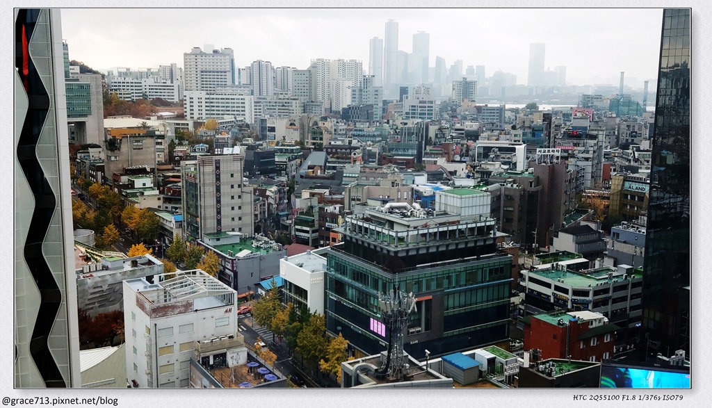 我們房間在19F, 也是一樣擁有高空景色, 不過, 我們是面弘大方面 , 樓下過馬路就是往弘大的路, 真的超方便