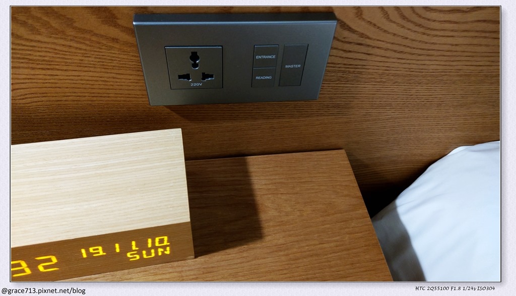 這飯店比較新, 所以床頭都有插頭, 很適合現代人睡前滑手機的習慣