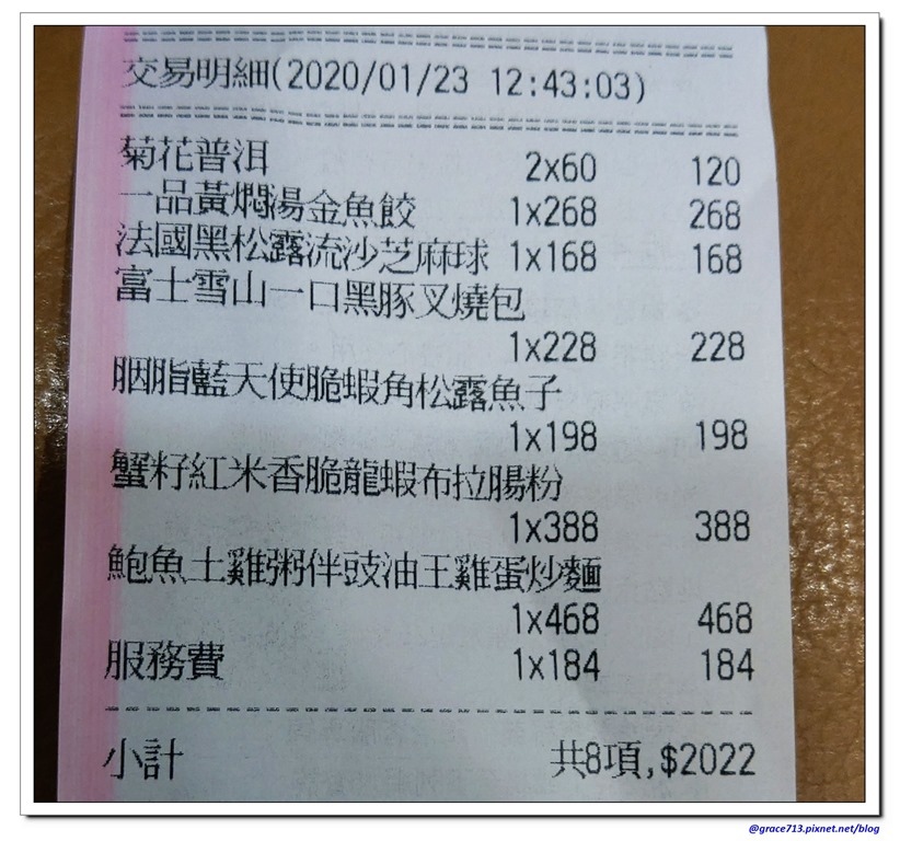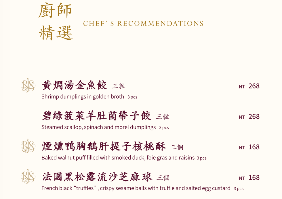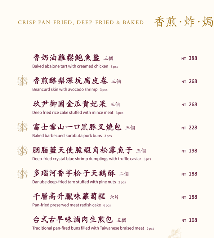 叉燒包 (原名很長, 請參考菜單及帳單) NT228
