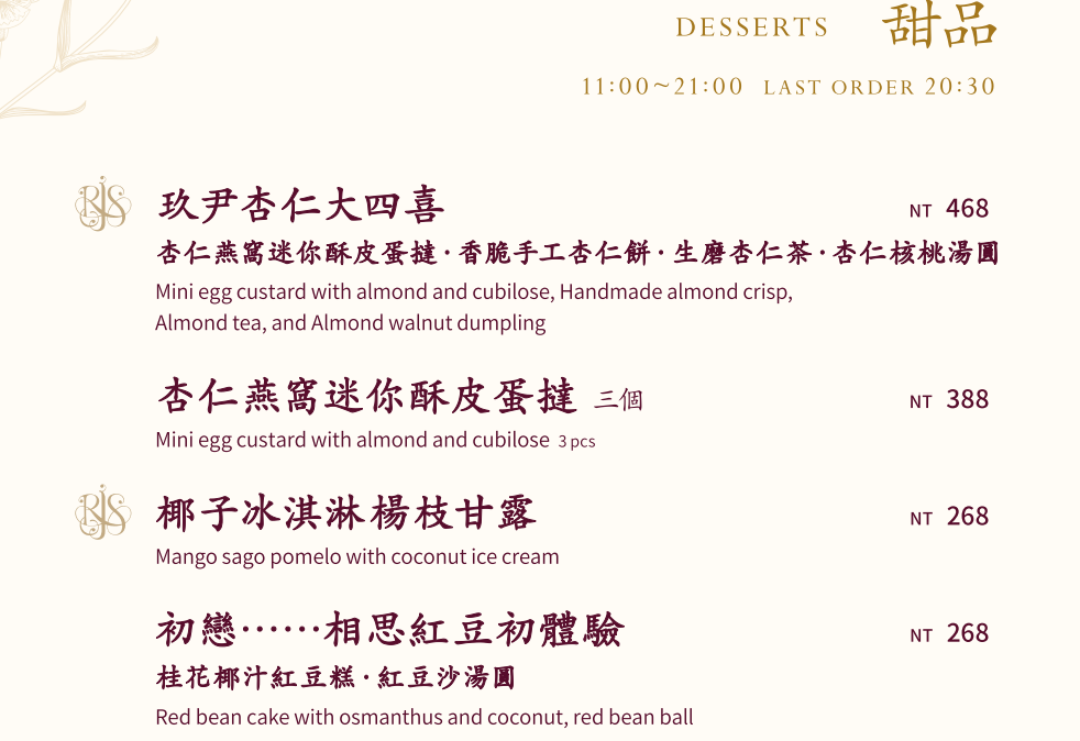以上菜單 主要是 11:00-17:00 的點心類菜單, 另外午餐或晚餐菜單, 可以參考官網或是店內提供