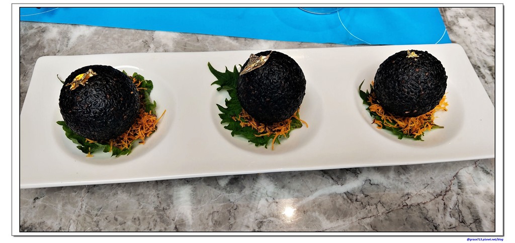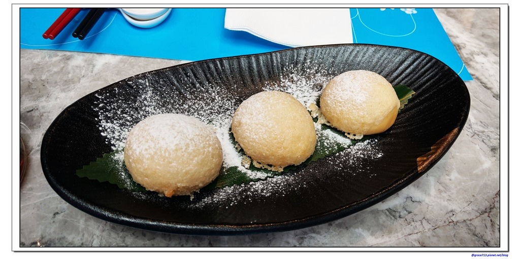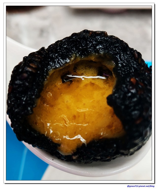 這道外皮是黑芝麻球, 內部就是鹹蛋黃奶油流沙 我個人蠻愛這道的
