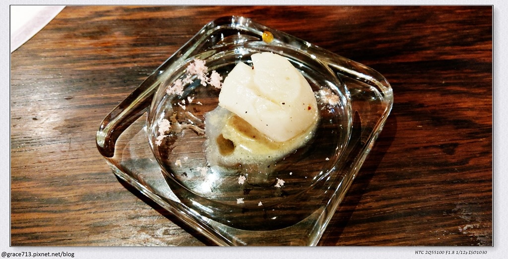 在下面是煎干貝佐玫瑰鹽 , 干貝煎的剛好, 很多汁又不會太生