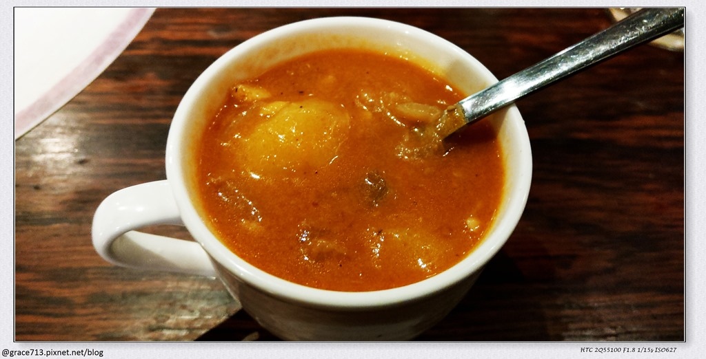 湯品, 今天是馬賽魚湯, 用馬鈴薯, 洋蔥及 魚肉下去打及熬煮的湯