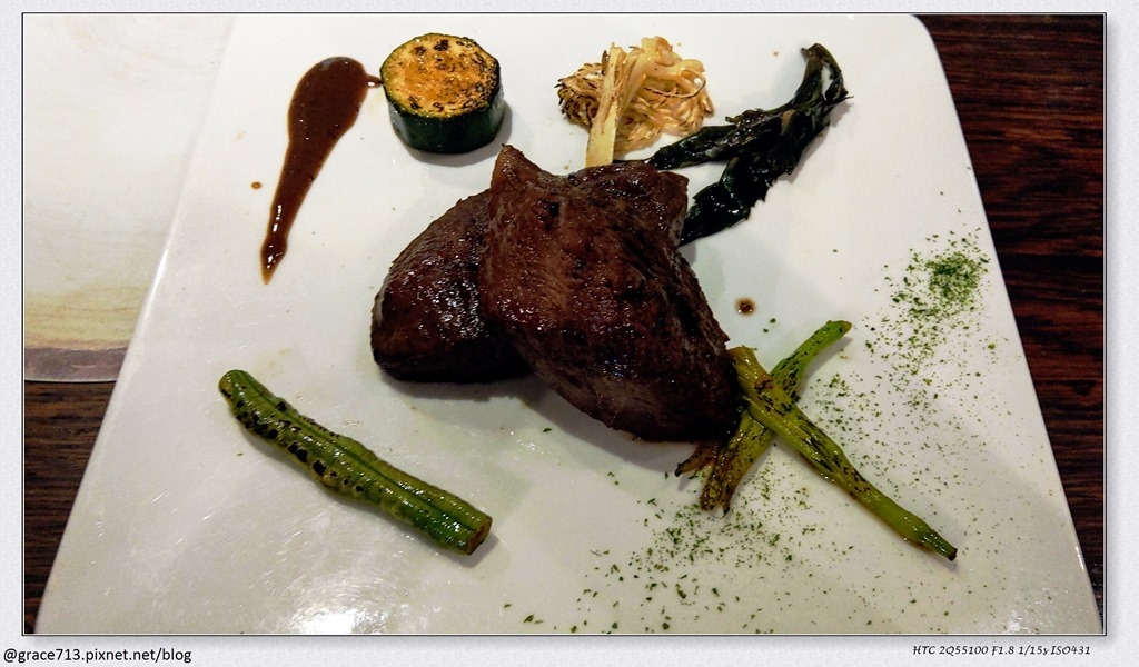 店家事先並未問熟度, 但上來看起來應是五分熟, 是剛好我愛的熟度, 肉質十分軟嫩, 朋友說, 真的差100, 整個肉質都有差呢!