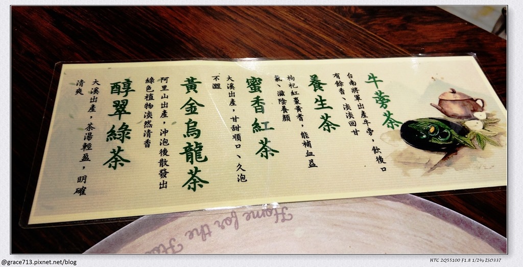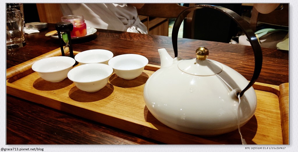 這裡有個特別的地方是餐後的熱茶是一桌一壼, 提供是養生茶或台灣茶, 完全跟台灣結合的意思..