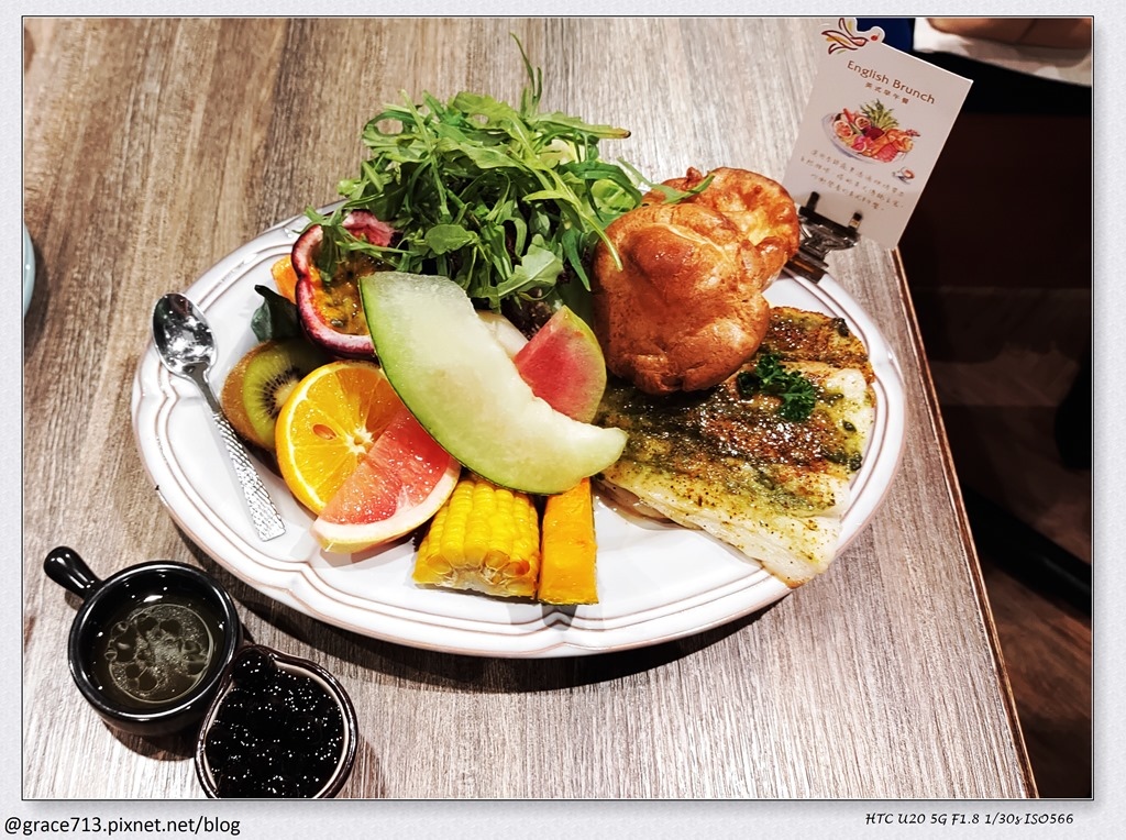 因為我很想吃英式約克夏布丁(雖然叫布丁, 其實是一種麵包), 所以我點了蘿勒鰈魚英式早午餐,