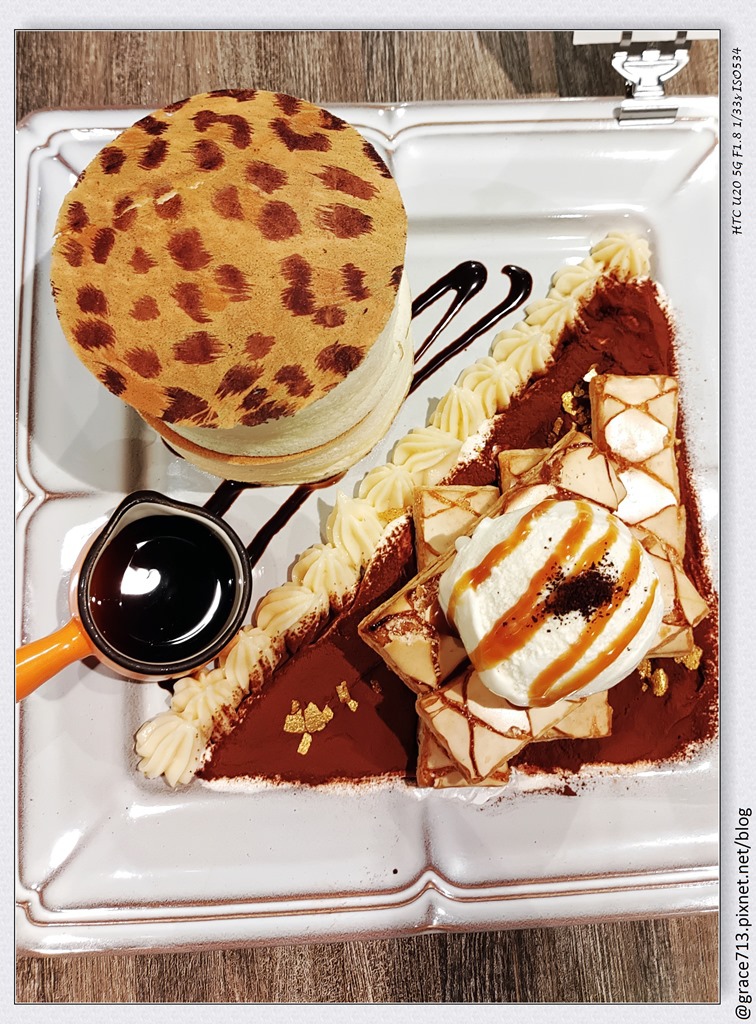 豹紋厚鬆餅, 我們選了提拉米蘇口味.. 上面還撒了金箔呢..
