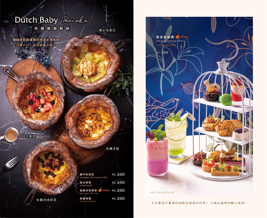 雖然本來是立志要來吃鳥籠三層下午茶, 但是看起來都只有甜食, 我們二個都沒吃午餐, 也沒信心可以吃這麼多甜食, 結果變成點二個鹹的主食及一份看起來很厲害的豹紋厚鬆餅