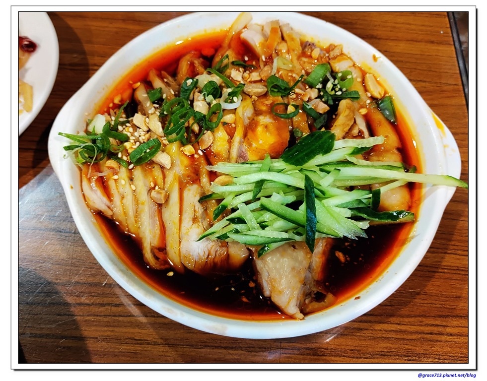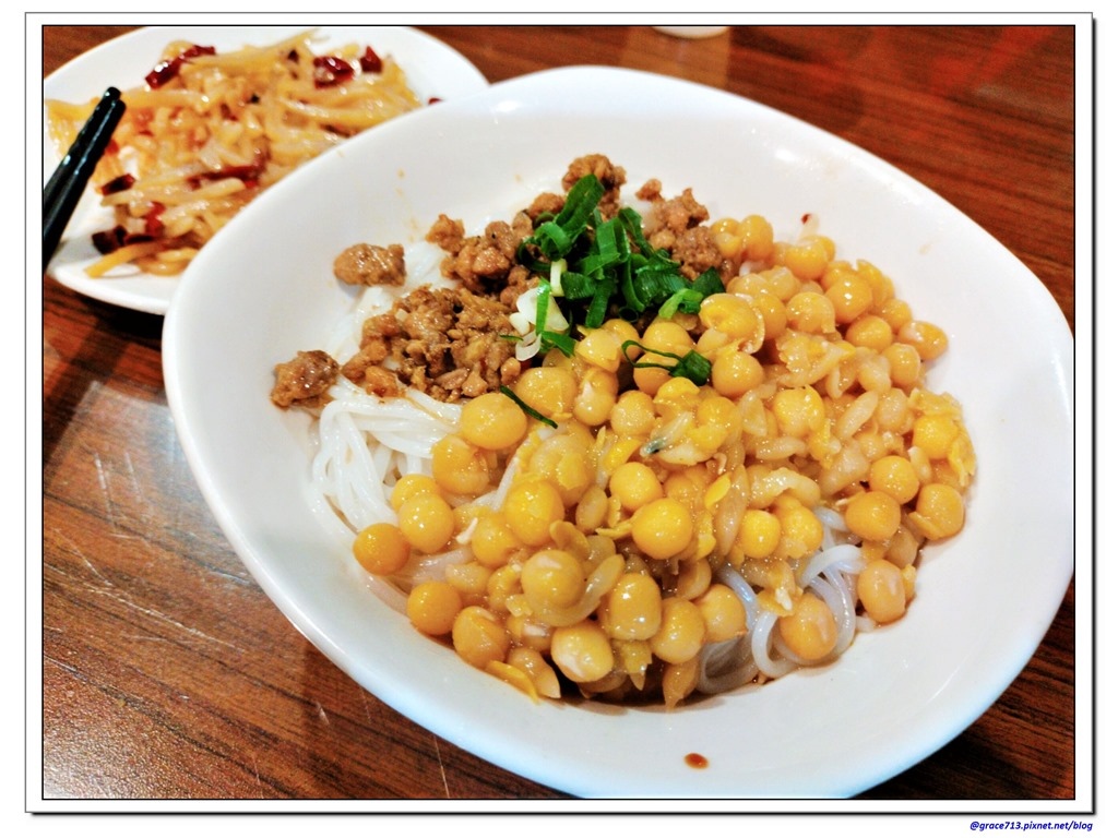 由於事先在網上查了, 必點的是酸辣粉及口水雞, 而我不能吃辣, 也不想吃湯類, 所以點了台灣幾乎很少見到的豌豆雜醬米線