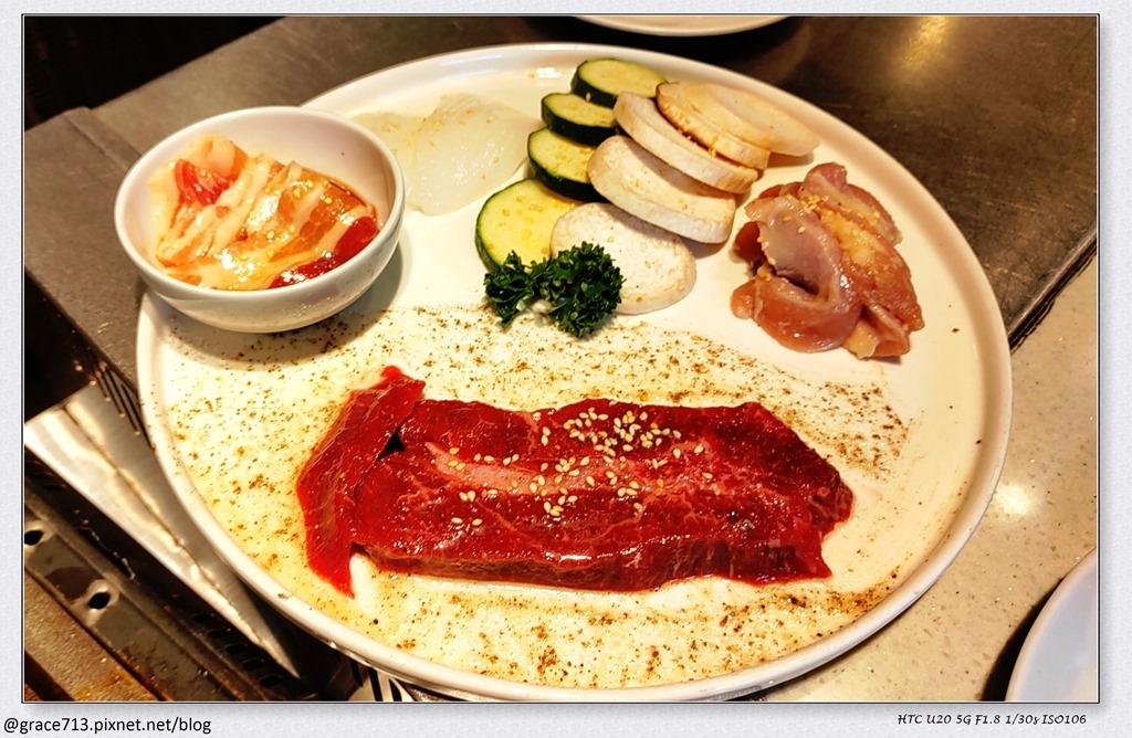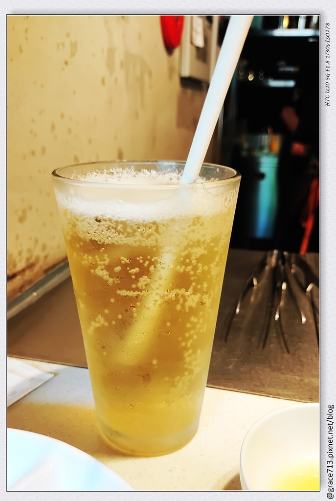 雖然來燒肉餐酒館很想喝點小酒, 但外面太熱, 很怕喝了出去,太陽一曬酒精蒸發 人也一起蒸發了, 所以我點了梅子氣泡飲