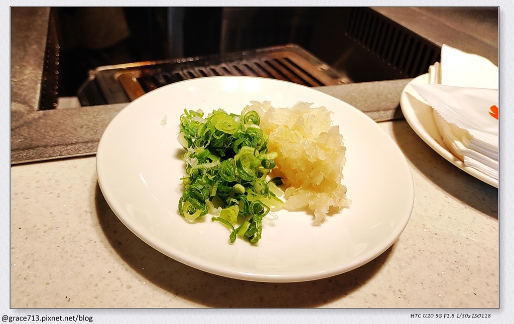 店員問我們吃不吃蔥或洋蔥, 我們二個都說OK, 店員就送上這盤可以跟肉一起吃