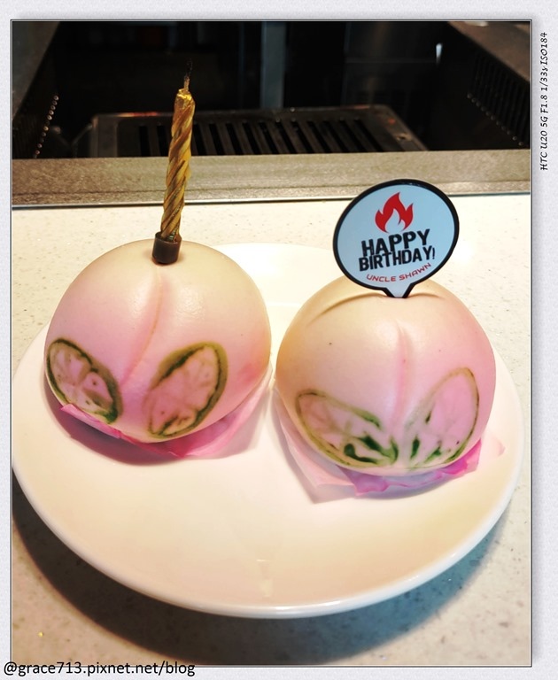 由於我們吃的很飽, 就沒再點店內也十分有名的甜點, 但沒想到還有送生日壽桃, 還有畫葉子, 也太可愛了