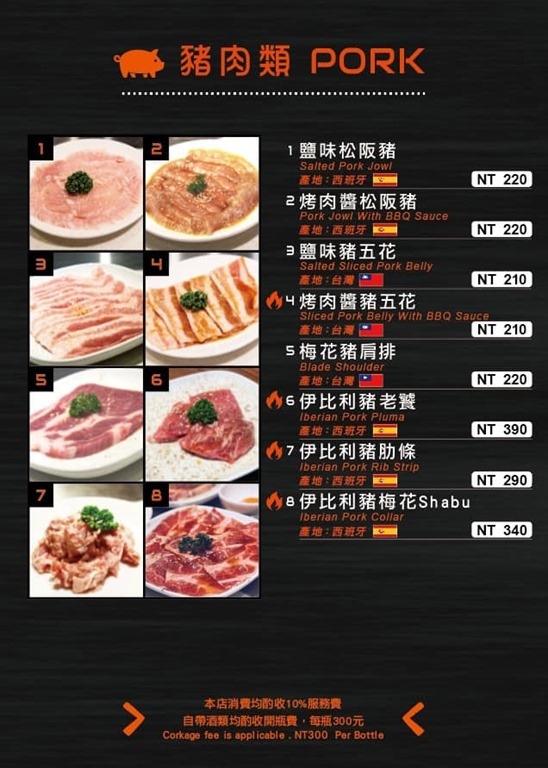 這盤是生日招待, 其實我們訂位時並沒特別說明有人當月生日, 是我看到服務人肙名牌上有寫了星座, 我問她為什麼名牌上要加上星座時, 她說是為了增加跟客人聊天話題, 我就順便問了, 他們生日有沒有什麼優惠呢, 服務人員說, 會送一盤肉, 牛, 豬, 雞擇一, 我就選了松阪豬了