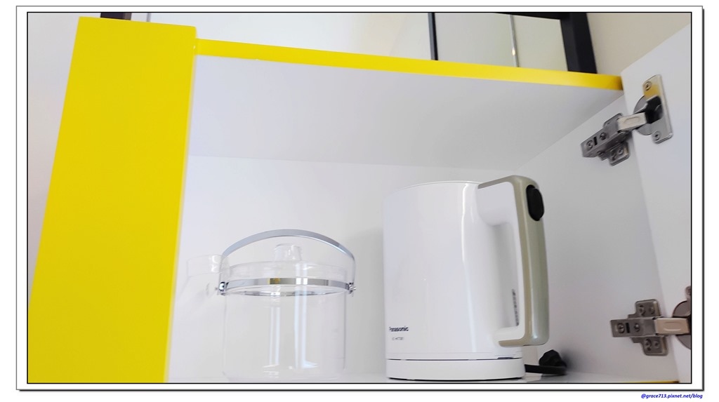 熱水壼及冰桶在櫃子最上方,