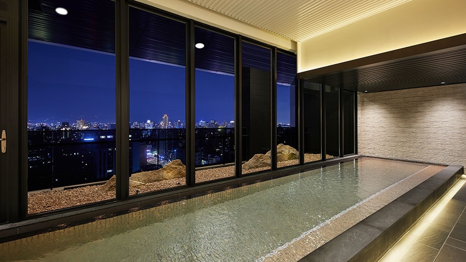 由於浴場位在17F, 景色十分好,但如果晚上來只有一片黑, 雖然現在是夏天超熱的, 但一早或下午5-6 點 來泡, 就可以看到天空及遠處的山, 真的有疲勞都不見的感覺