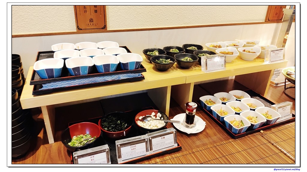 基本上這裡的早餐真的跟在日本住宿相似 , 有大份量的生菜區, 少量麵包, 和式的 納豆飯, 五目飯, 咖哩, 味噌湯一應俱全, 當然也有Japoli 的Pizza