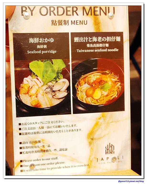 另外還有用點單方式的台式 餐點, 海鮮粥及擔仔麵