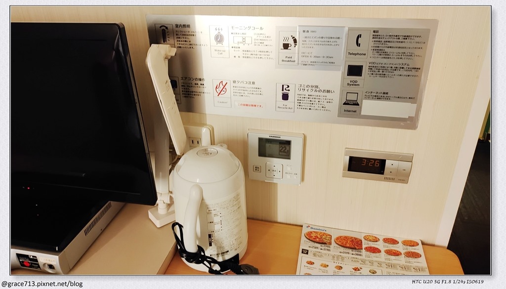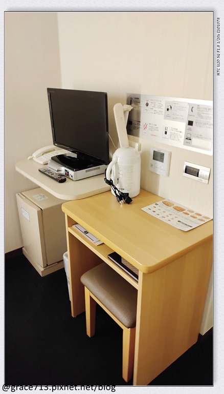 大概是在整修, 櫃台也是小小的, 服務人員很貼心的用很慢的日語跟我解說注意事項, 由於在整修中, 無料早餐也沒提供, 有點可惜. 睡衣, 杯子, 茶包等備品在1F 櫃子內自取,